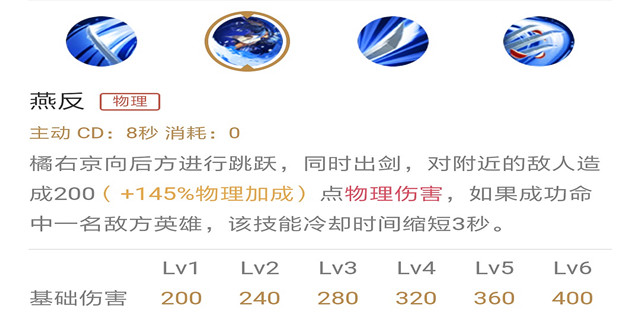 技能解析:橘右京的AOE伤害技能,输出很高,冷却快,适合消耗敌方来保证自己的健康血量,提高生存能力。
